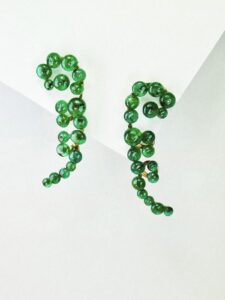 esmeraldas de cabuchon                                        Pendientes realizados en oro amarillo de 18ktes Eemeraldas talla cabuchon
