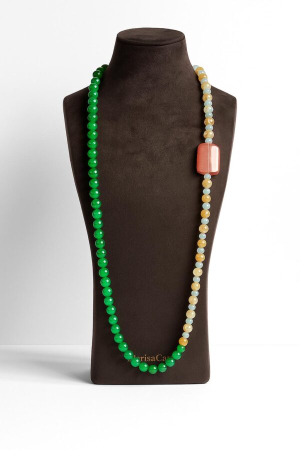 Fantástico collar, realizado en jade imperial, aguamarina, cuarzo y agata.