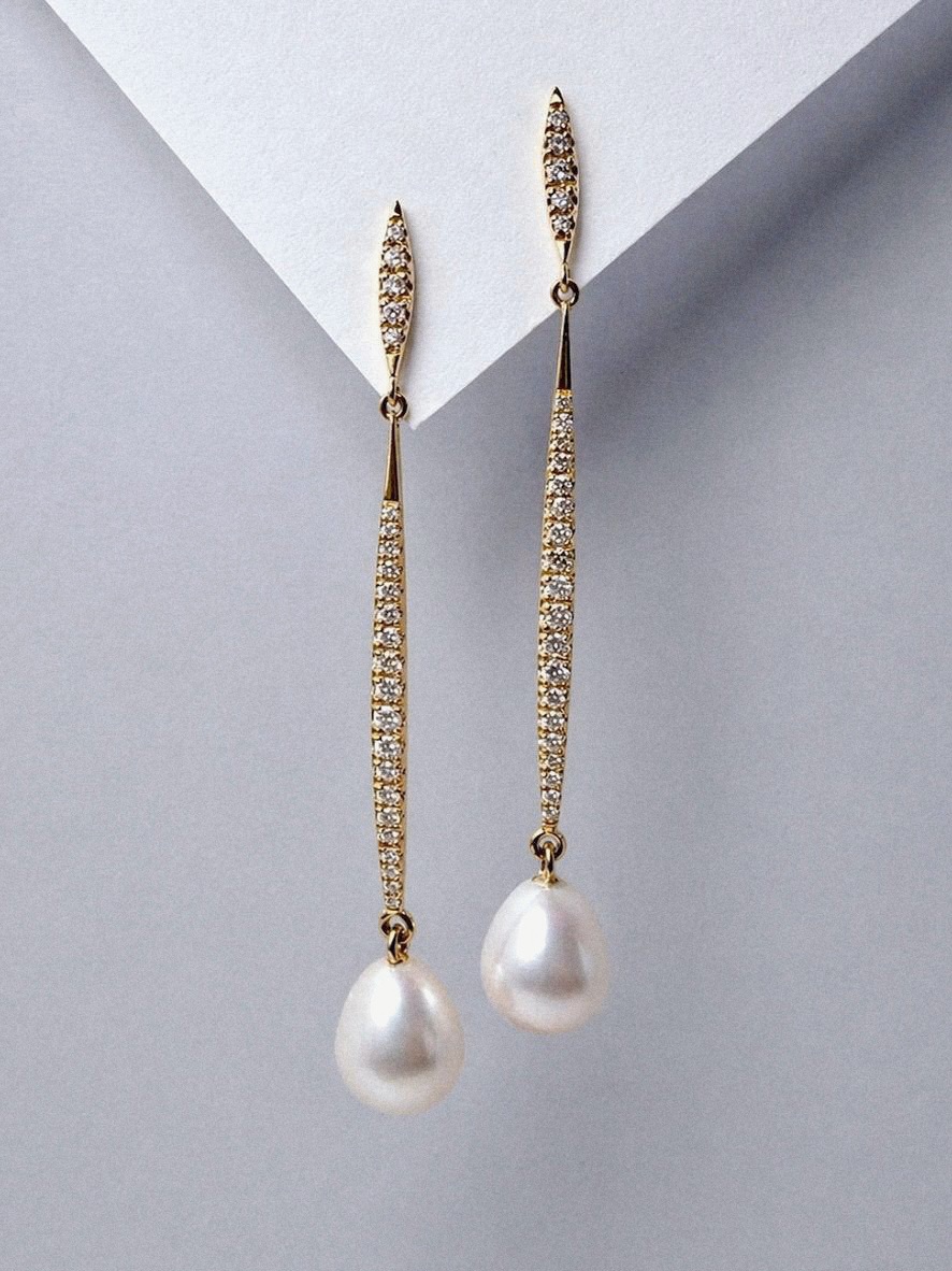 pendientes oro rosa diamantes y perla cultivada