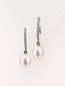pendientes perlas cultivadas con enganche de diamantes en oro blanco